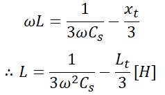 소호 리액터 접지에서 소호 리액터의 크기를 선정할 때는 대지 정전 용량과 병렬 공진 조건을 이용해 계산합니다. 그런데, 변압기에도 임피던스가 있으므로 이 변압기 임피던스 xt를 고려하는 경우와 고려하지 않는 경우로 나눠서 계산합니다.