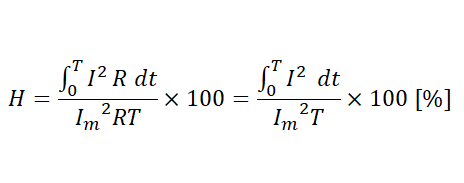 여기서, T는 계산하고자 하는 기간, I는 어느 한 순간의 전류, Im은 기간 동안의 최대 전류입니다.